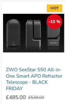 Other specifics? The Unistellar is as above a 114mm reflecting telescope, one with a focal ratio of f/4, meaning its focal length comes in at 456mm. Like almost all other smartscopes, it rides on a one-arm goto fork mount. Other than that? It features a Sony Exmor IMX224 imaging sensor with a field of about ½ degree. Also like her sisters, the Equinox is powered by a USB-C rechargeable battery and operated via wi-fi with an app on your smartphone.