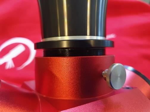 The second key feature of the Flip Turret are the parfocal rings. This is the feature that keeps all the eyepieces in the same focal plane, so no more fiddling with that focuser! Each lock has parfocal ring that can be adjusted to add between 0 to 4.5mm of additional backfocus, or the parfocal ring can detached to remove 5mm in one step. The back focus of the Flip Turret is 152mm, so the parfocal ring can adjust that figure to between 156.5mm and 147mm. You can see the maximum open position on the photo above.