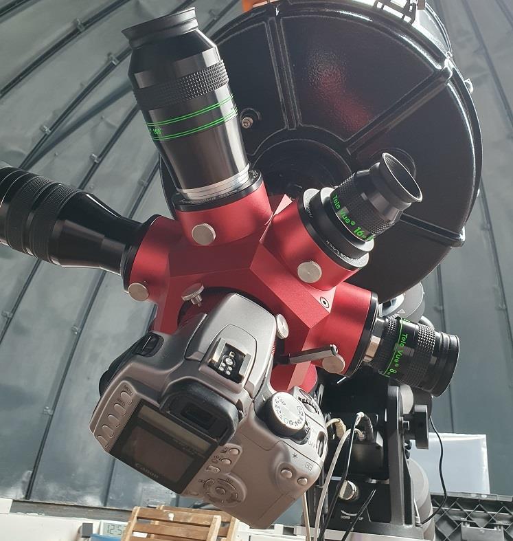 The first main feature of the nPAE FlipTurret is that it effortlessly holds six 2” accessories. Shown here with a selection of #televue #skywatcher and #meade eyepieces you can rotate the turret in either direction to access the desired eyepiece. You can finally make use of all your eyepieces together! During those moments of good quality seeing you can swap for high magnification. Now you can switch between wide field and narrow field for nebulas and plan-