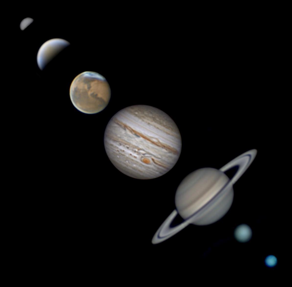 My latest image of the solar system taken in 2022/2023 planetary season has recently been shortlisted at the first European Astrofest imaging competition. It took a while to assemble all the planets, waiting for the best time for each one, and for Mercury I had to take the scope to the South Downs because in the city don’t have enough clearance from the horizon. I upgraded from an 8” to a 9.25” SCT halfway, and for Venus I got a monochrome planetary camera and UV and IR pass filters to learn to get some details of its cloud structures.