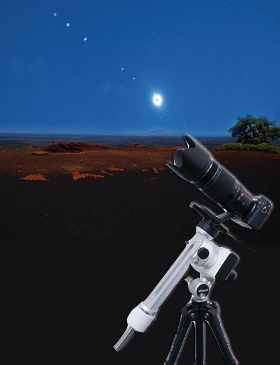 Shown on the cover is a solar ready G a l i l e o s c o p e t e l e s c o p e w i t h s a f e solar filter and sun shade. In his article, Dr. Douglas Arion provides an over view of the Galileoscope’s new solar functionality. The background e c l i p s e i m a g e i s c o u r t e s y o f D r James Dire (see his eeclipse planning a r t i c l e i n t h i s i s s u e ) T h e i m a g e features all the phases of the July 2, 2 0 1 9 e c l i p s e w h o s e p a t h o n l y crossed land in Chile and Argentina.