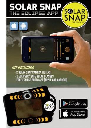 Duncan says the Solar Snap is sold as a kit that includes two sets of special eclipseviewing lenses for smartphones, two sets of paper eclipse-viewing glasses and instructions for downloading the software to make two cameras capable of taking eclipse photos.