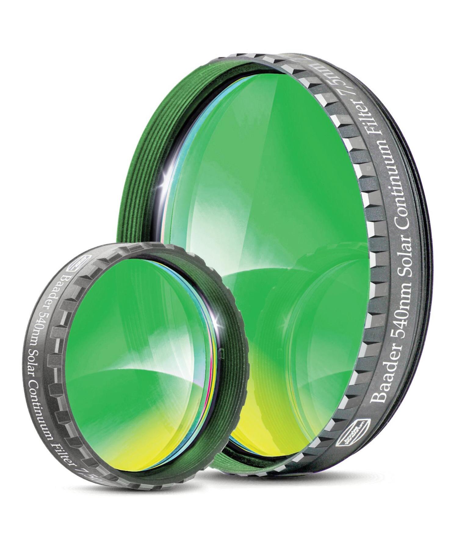 The Baader Solar Continuum Filter is a narrowband photosphere filter for solar observation in white light providing the highest contrast in the photosphere of the Sun. The filter is a perfect fit for owners of achromatic refractors. This narrowband filter cuts the spectral range where lens optics draw sharpest and contrastiest. The Baader Solar Continuum Filter lets you use the full power of your telescope.