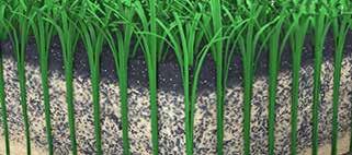 AstroTurf®s RootZone® is a layer of texturized fiber that curls down to roughly the height of the infill. The crimped fibers form a net-like matrix that encapsulates the infill and holds it in place, reducing infill splash and migration. Infill stability provides: