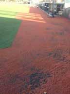 Conventional infilled turf fields exhibit constant infill migration which leaves empty holes, divots, and dangerous spots if not carefully maintained.