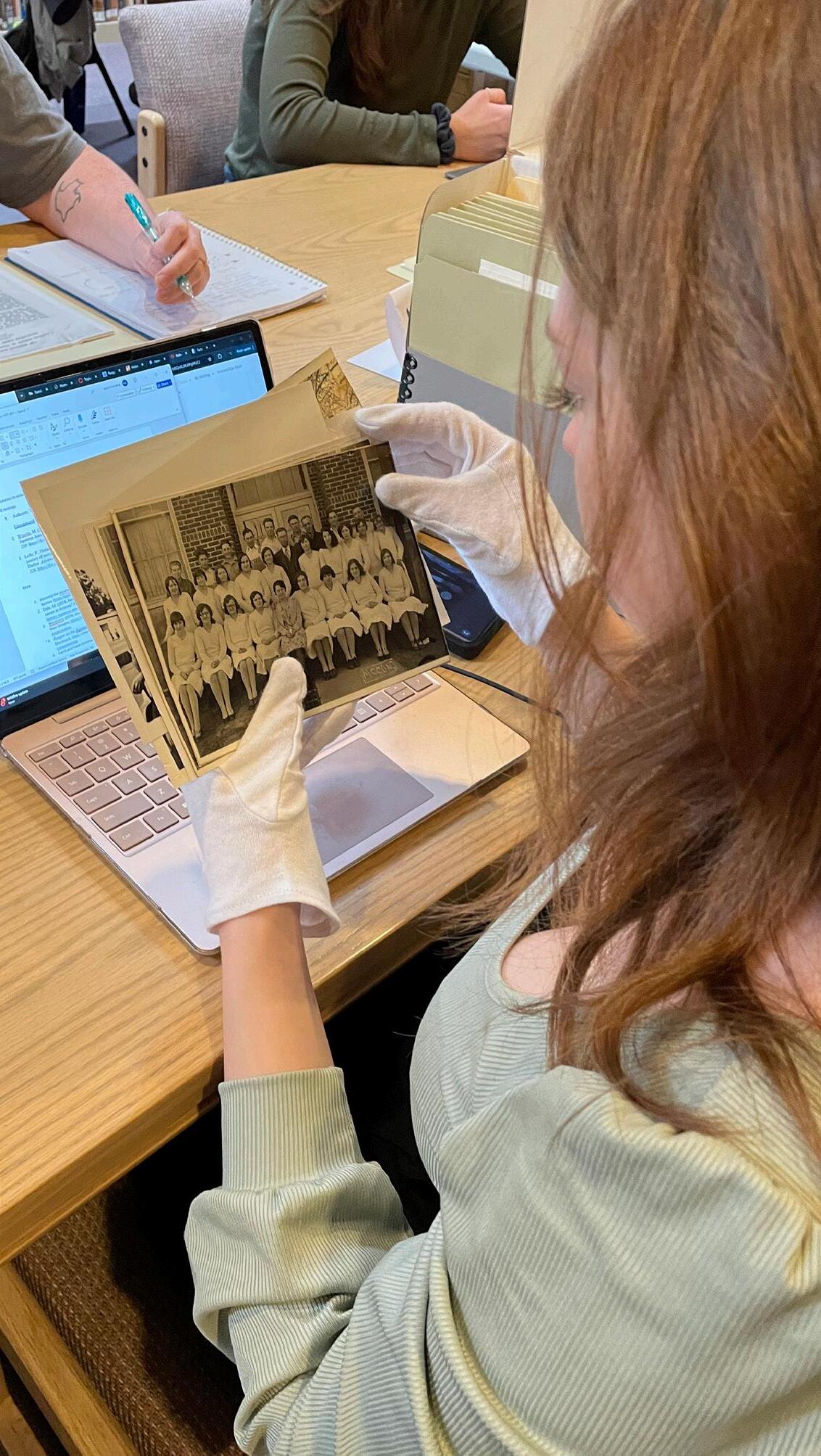 Students get hands-on experience with physical collections at the Mesa Historical Museum as part of the Public History Undergraduate Research Experience.