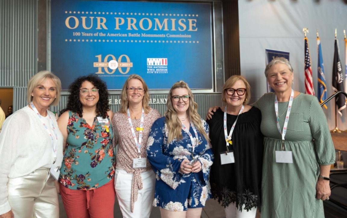 Public History benefits from the collaboration with the World War II Studies Program. “The Riveting Rosies” formed a bond during their time in the program, and were instrumental in creating the WWII Monuments and Memorials site. Julia Gimbel, Angèlica Cordero, Laura Bailey, Carys Caffarel, Robin LaCorte and Mary Ellen Page. Photo courtesy Frank L. Aymami III