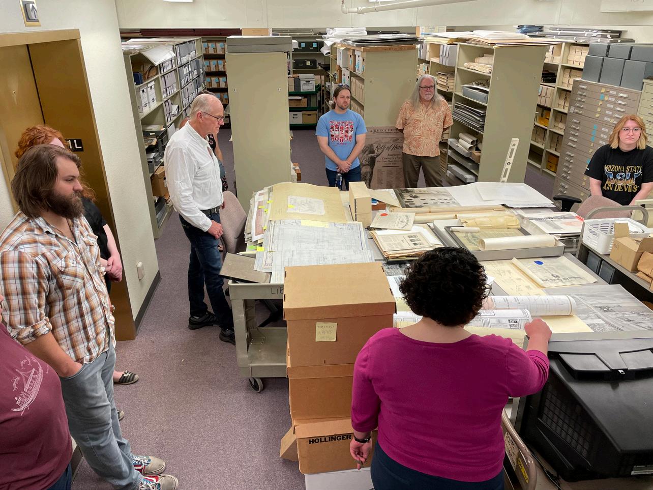 Online undergraduates from around the nation develop research and curatorial skills by coming to campus through the College of Liberal Arts’ OURS (Online Undergraduate Research Scholars) Programs each fall. Developed by Dr. Pete Van Cleve, Erin Craft, and Dr. Kole de Peralta, Dr. Pete Van Cleve, Erin Craft, and Dr. Kole de Peralta, the program originated as a pilot project funded by the OURS initiative and is now supported by SHPRS