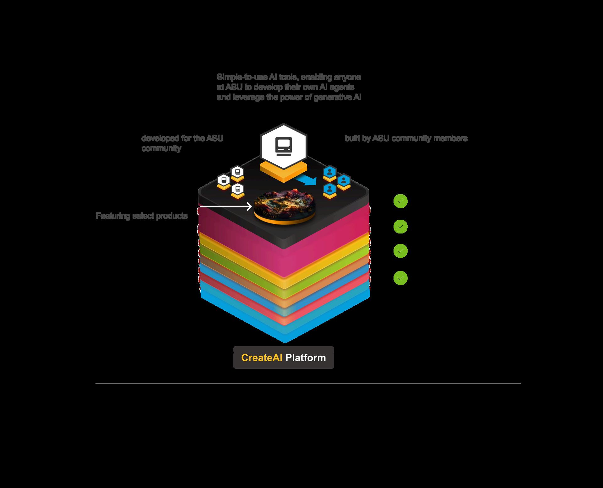 ASU’s CreateAI Platform is a robust, secure foundation that enables faculty, staff, and researchers to build, prototype, and deploy AI solutions without coding expertise. Simplifying AI development removes barriers to innovation and ensures ASU remains at the forefront of AIpowered education and research