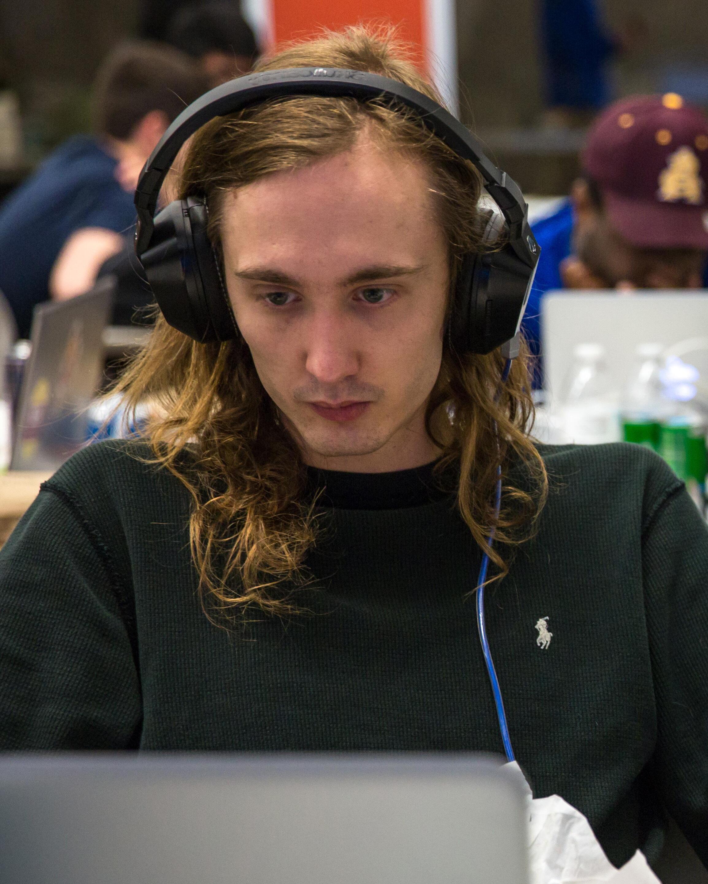 Michael Pechacek, a sophomore computer science major, works on an Android user interface for an app his team is developing.