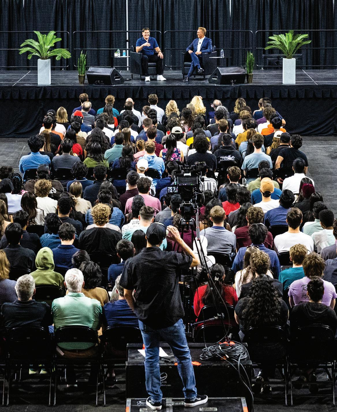 Mark Cuban, entrepreneur, investor on ‘Shark Tank’ and former principal owner of the Dallas Mavericks, engages in a conversation with Ambassador Jeff Flake before around 1,000 students, faculty and staff, for the inaugural Dialogues for Democracy on Wednesday, Feb. 26, 2025, at Mullett Arena.