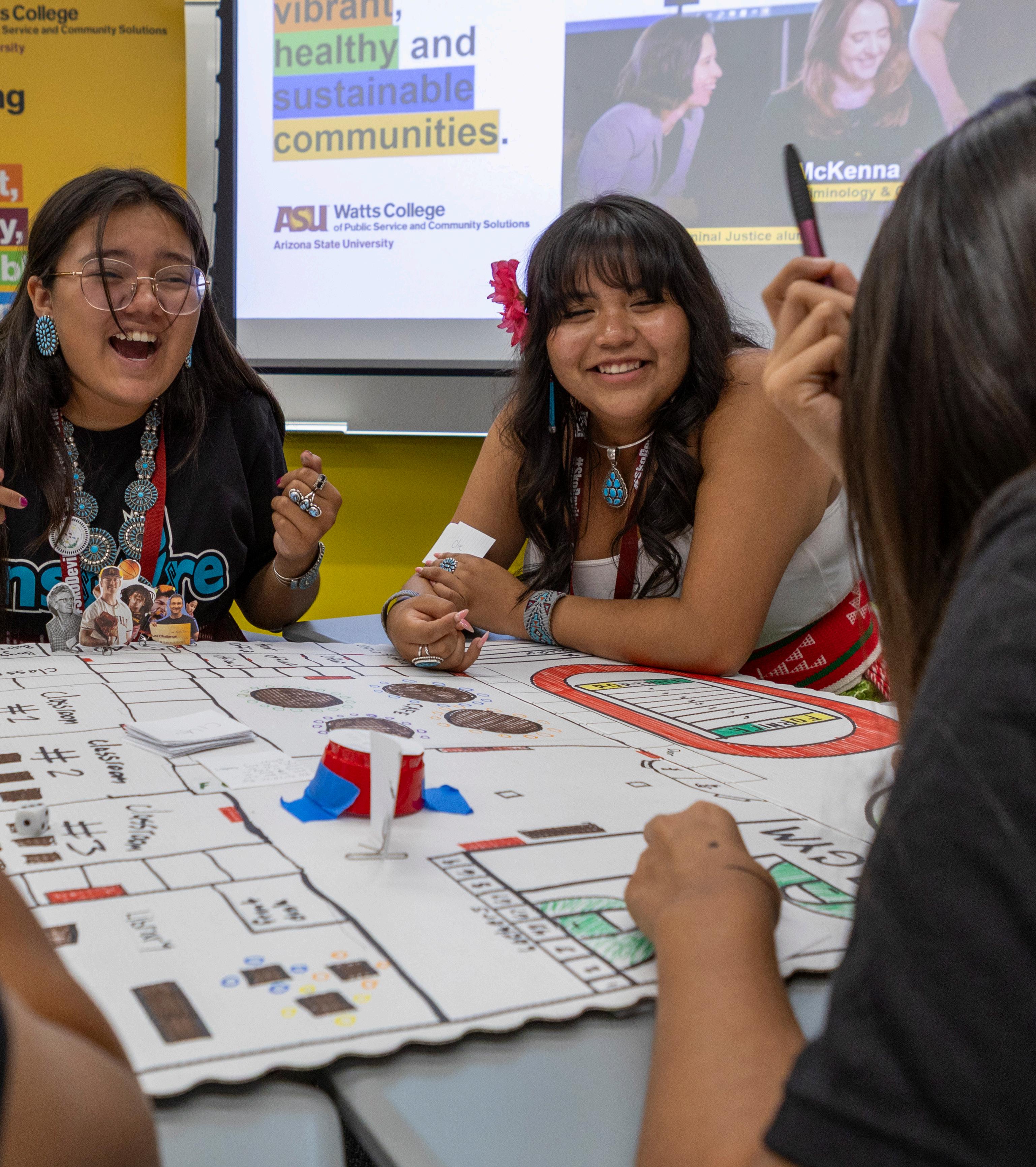 Native American students participate in an Access ASU Summer Program, hosted by ASU’s Office of American Indian Initiatives in June 2025. Facilitated by Watts College instructors, the students created an interactive game to explore public service and safety.
