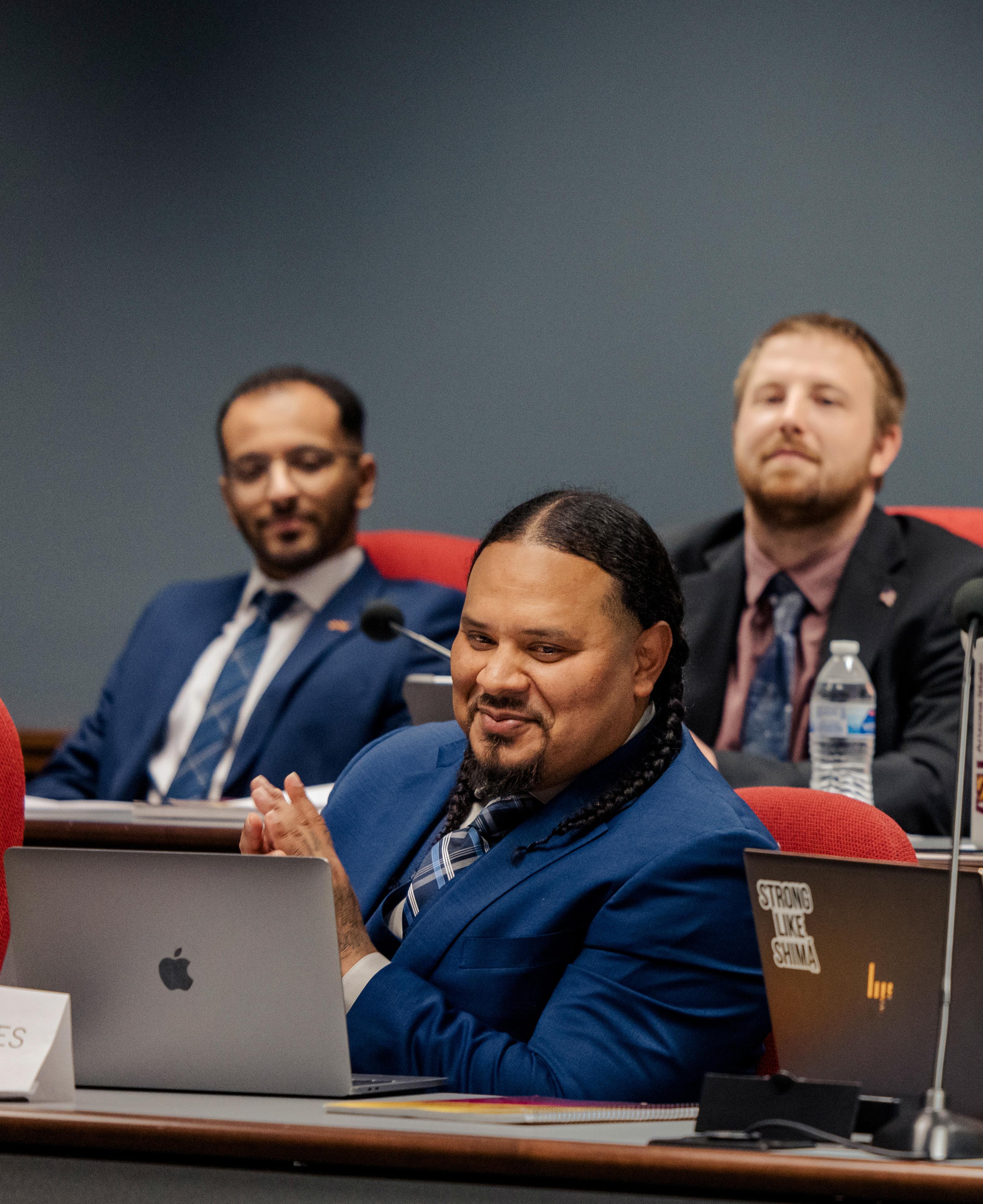 Cordero Holmes, center, a graduate student pursuing dual master’s degrees in criminology and criminal justice and public administration, joins fellow MPA classmates in hands-on training at the State Capitol to gain insight into public policy. Holmes also mentors and trains youths impacted by the justice system.