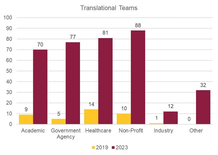 increase inTranslational Team membership from fiscal year 2018-2019 through 2023