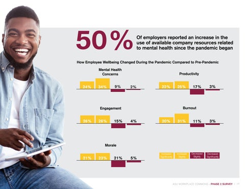 Of employers reported an increase in the use of available company resources related to mental health since the pandemic began How Employee Wellbeing Changed During the Pandemic Compared to Pre-Pandemic Mental Health Concerns
