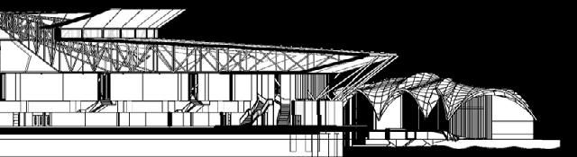 Merging park, Amphitheter, and Public Space Building Public Space to entry for 2nd level Lobby to Arena Catwalk to Hallway Arena to fire exits 01 02 03 04 05