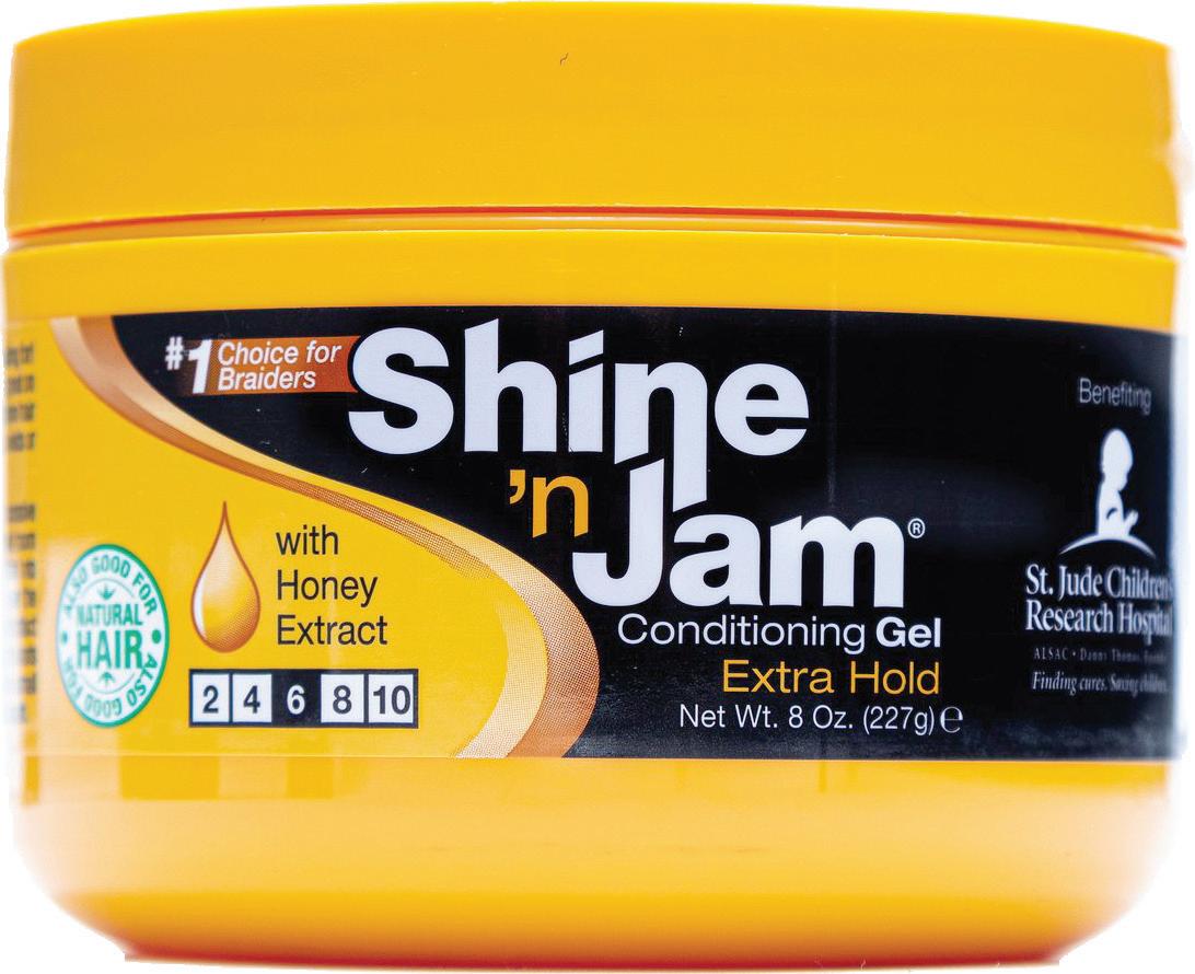 Shine ’n Jam® Extra Hold - The BEST gel on the market: free of alcohol, parabens, wax, petrolatum and silicones. This moisturizing, non-flaking gel has a firm, non-greasy hold. Enhanced with Honey Extract to help strengthen hair. Great for soft waves, braids, locks, twists or any style your heart desires!