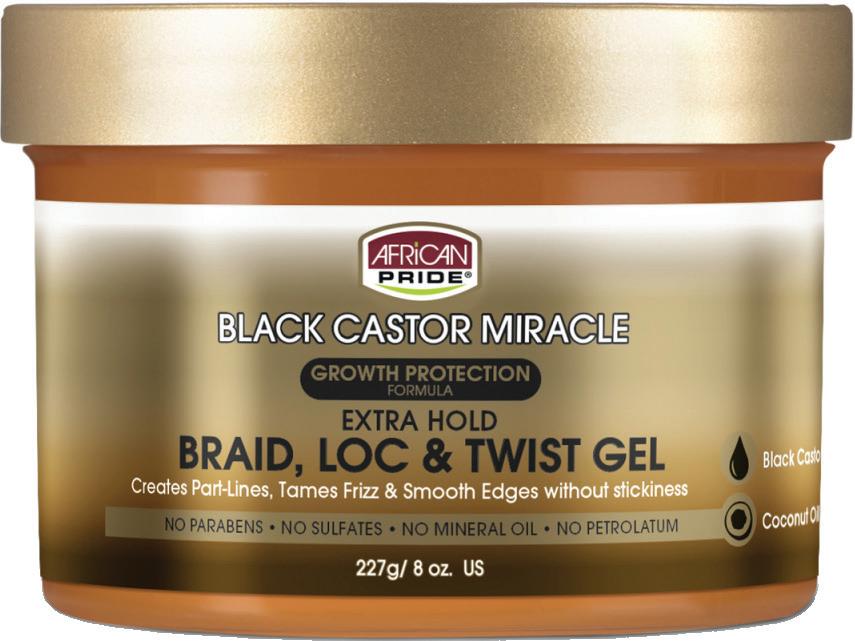 A styling gel designed to provide a long-lasting hold for braids, locs, and twists. Enriched with natural ingredients, including black castor oil and coconut oil, this gel helps to nourish and strengthen hair while providing a strong and durable hold.