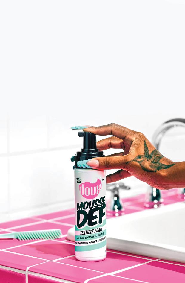 MOUSSE DEF Texture Foam® (7oz) by The Doux is an award-winning, lightweight styling foam that delivers medium-to- rm hold with de ned, frizz-free curls or sleek, smooth edges without crunch or akes . Formulated with aloe, silk proteins, and natural humectants, it hydrates, strengthens, and adds shine while maintaining softness and bounce. Suitable for all hair types—especially textured— this versatile product performs beautifully on wash-and-go styles, twist-outs, and edge control. Users consistently praise its ability to de ne curls and enhance volume, with no residue or helmet-like crunch, often layering it with gel for extended hold.