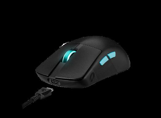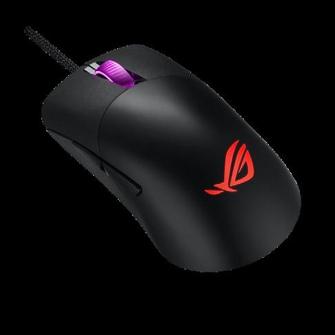 Mouse liviano para juegos FPS con sensor ROG de 16,000 ppp especialmente ajustado, sockets exclusivos push-fit, teclas L / R de polímero PBT, patas de mouse ROG Omni, ROG Paracord e iluminación Aura Sync RGB