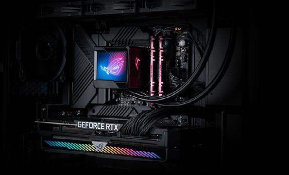 As the first ROG AIO coolers equipped with an 8th-generation Asetek pump, ROG Ryuo III 360 ARGB and ROG Ryuo III 240 ARGB offer exceptional cooling potential, making them ideal partners for the latest high-end chips from Intel and AMD. A three-phase motor drives higher-than-ever flow rates, all while operating more quietly. The square cold plate is larger than the previous generation, and its size makes it ideal for this year’s hot-off-the-press CPUs. The new coolers feature the dazzling AniMe Matrix display. This array of mini-LEDs right on top of the pump housing shows ROG-exclusive content, core system stats and custom animations with unforgettable style. The diamond-cut bezel along the top edge of the housing focuses attention on the display. To maintain the aesthetic of the device under all circumstances, ASUS installs a vacuum-coated lens above the display.