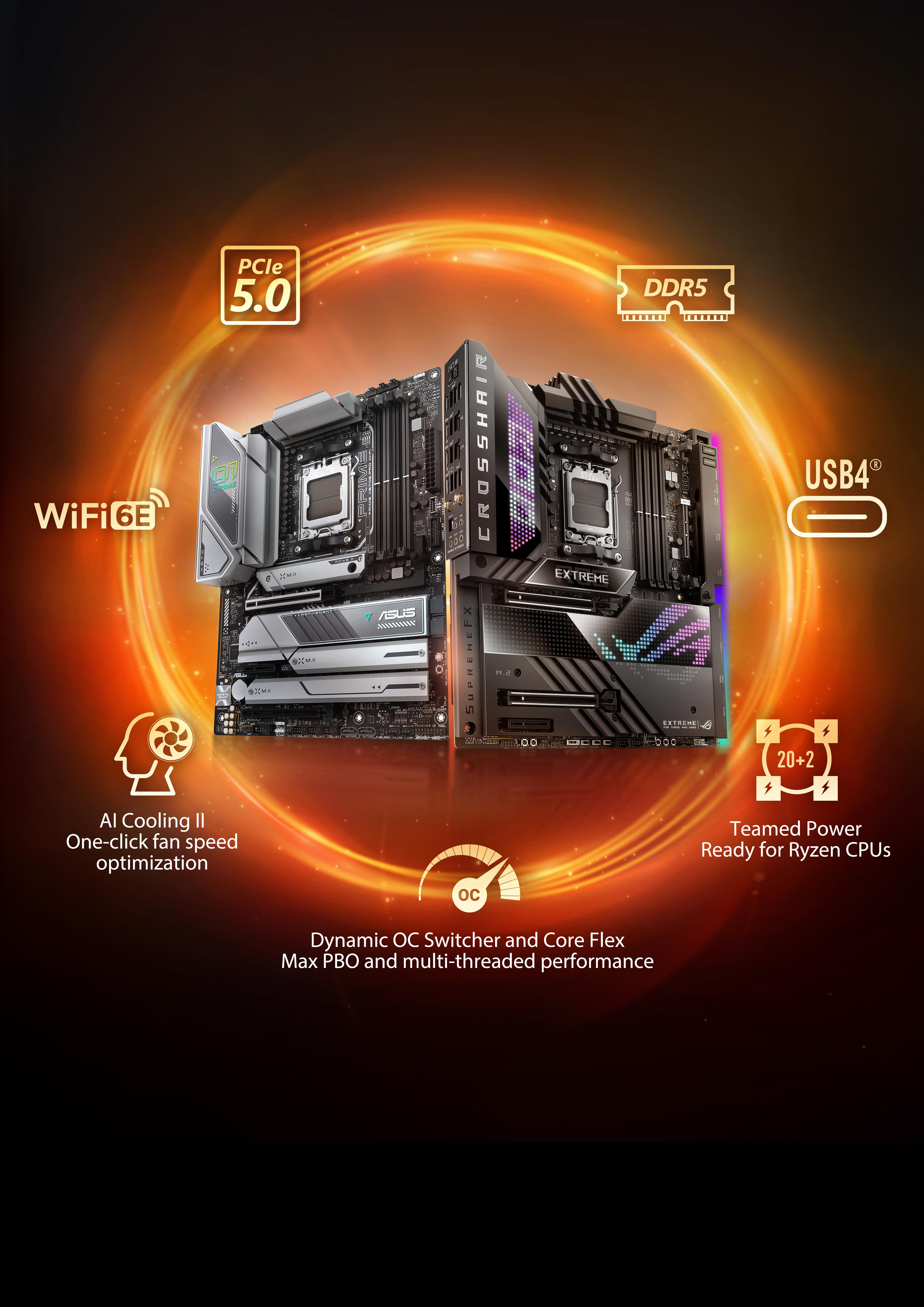 Our comprehensive lineup of Intel Z790 motherboards across the ROG Maximus, ROG Strix, TUF Gaming and ASUS ProArt and Prime product families are built to support the latest 13th Gen Intel Core processors. With exclusive technologies like ASUS Enhanced Memory Profile (AEMP) II, AI Overclocking and AI Cooling II, plus userfriendly features such as Q-Design, ASUS Z790 motherboards are ideal solutions for users aiming to build a nextgen machine or upgrade their existing system. All-new AEMP II profiles offer up to 41.6%-faster RAM speeds than baseline DDR5-4800 specs, with a flexible training method that makes it easy for users to tune their memory maintaining stable system operation. Similarly, ASUS AI Overclocking is powered by exhaustive research and characterization of the performance potential of thousands of actual CPUs in ASUS testing labs — leading the industry for overclocking performance and ease of use. ASUS AI Overclocking’s sophisticated intelligence also monitors CPU cooler efficiency and changes in a PC’s operating environment to tune parameters over time for the best performance with each system’s unique set of components. It’s available on all ROG Maximus and ROG Strix Z790 motherboards. Finally, AI Cooling II and FanXpert work in concert, using a machine-learning algorithm to gather data about the system. From then on, AI Cooling II monitors the CPU temperature and uses Amoury Crate’s stress test to calculate the lowest fan speed required to effectively cool the system — while minimizing noise levels.