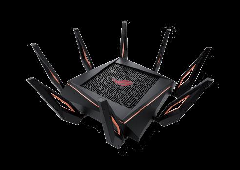 ROG Rapture GT6 is the first ROG mesh WiFi system especially optimized for gamers. This tri-band WiFi 6 setup uses a sophisticated blend of cutting-edge components and software to deliver blazing-fast download speeds, low-latency gaming, dead zone elimination and robust security. Specifically, Rapture GT6 delivers up to 10,000 Mbps of bandwidth, courtesy of two 5 GHz bands running at up to 4804 Mbps each, and one 2.4 GHz band running at up to 574 Mbps. This massive bandwidth can cover up to 5,800 square feet, empowered by the smart antenna and ASUS Rangeboost Plus technology. The smart antenna can detect optimal signal-arrival directions for backhaul connections to mesh connectivity and eliminate WiFi dead zones. And for those who desire true multi-gigabit wired connections, there is also a 2.5 Gb WAN port and LAN aggregation. Meanwhile, the ROG touch includes triple-level game acceleration to prevent jitter, reduce lag, lower pings and increase speeds, empowering memorable gaming experiences. As with ZenWiFi XT9 above, Rapture GT6 also benefits from free ASUS AiProtection Pro and ASUS Instant Guard security.