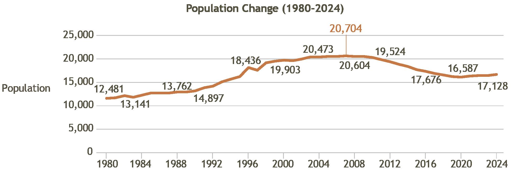 La Paz County peaked in population in 2007 at 20,704. After a population decline from 2008 to 2020, the population grew to 17,128 in 2024, making it the second-to-last in population in the state. In 2023, there were 8,887 households in La Paz, representing a 0.3% decrease since 2018, making it the only county with a decline in households during that time.