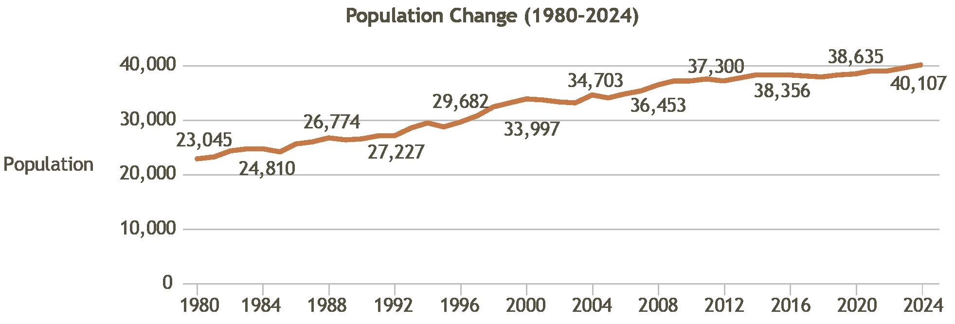 Graham County’s population has grown steadily over time, reaching a new high of 40,107 in 2024, making it the 13th most populous county in the state. In 2023, there were 12,460 households in Graham, which is a 15.6% increase since 2018, the fastest growth rate among Arizona’s counties.