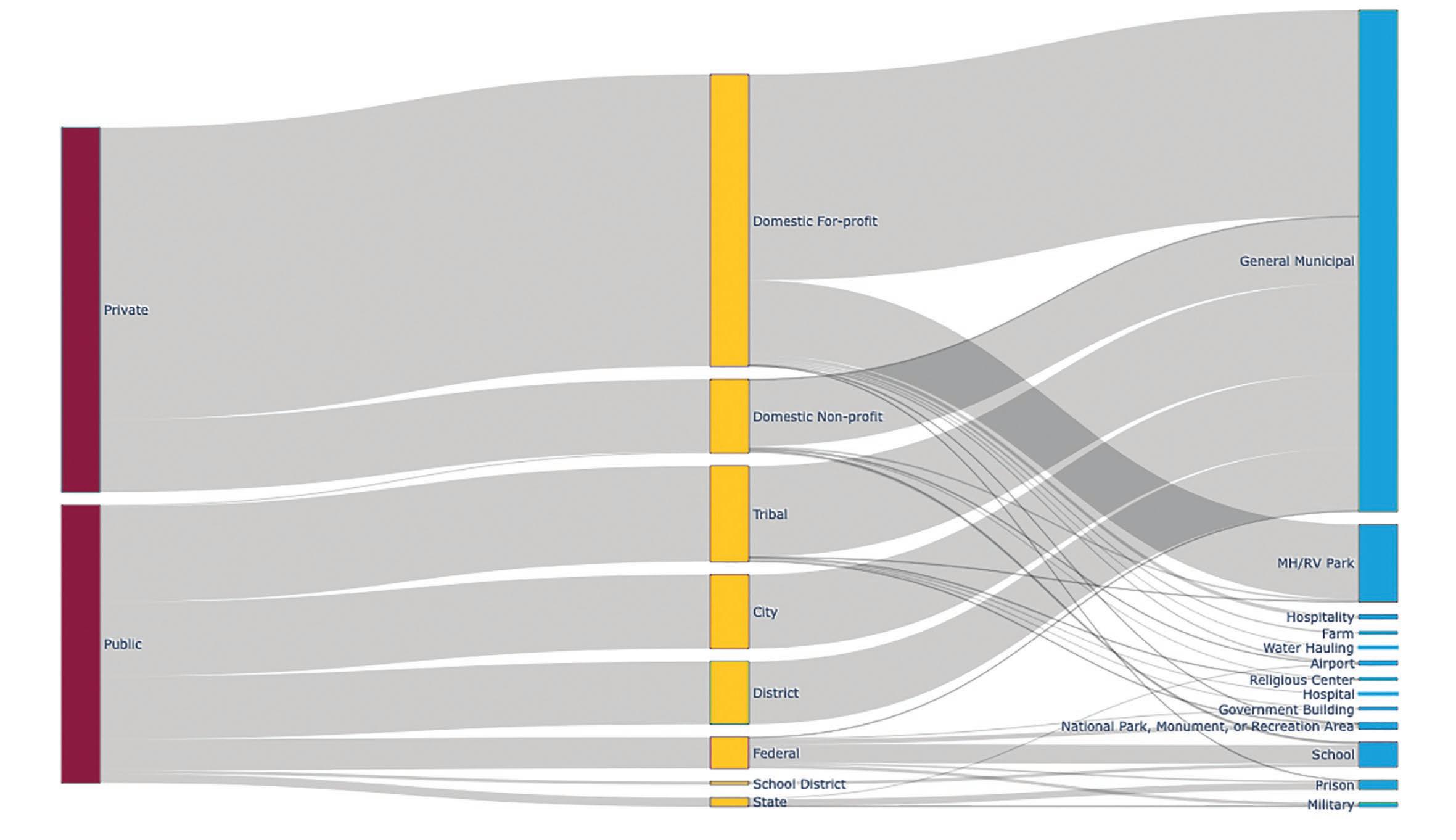 Ownership characteristics and associated end-uses of community water systems in Arizona are presented below:
