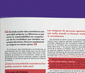 Tipografía Josefin Sans Aa Regular Bold Light Primaria Neue Hass Aa Regular Bold Light Secundaria Fenwick Aa Regular Bold Light Secundaria #3f2218 RGB (63, 34, 24) CMYK (0, 46, 61, 75) #19223d RGB (26, 34, 60) CMYK (56, 43, 0, 76) #44603a RGB (68, 96, 58) CMYK (29, 0, 39, 62) #d59c45 RGB (214, 157, 69) CMYK (0, 46, 61, 75) Cromía equipos localesyextranje infbres del lado de Nepal, incluidos entre otros: Summit Club, 8K Expeditions, eaks,Adventur Consultant Alpine scents Altitude Junkies Climbalaya Climbing the Se Summit Dreamer's Destination, Elite,Ftenbach. Ad entures Imagine Nepal, IMG, Kaitu, Madison Mountaineering, Pioneer Ad entures, Summit Climb en Summit T ks pesar de los uertes vientos del luto por la pérdida de tres compañerosde equipo que murieronenl cascada de hielo de Khumbu, equipo de cuerdas sherpa alcanzó la cim mediados de yo.Luego que los vientos amainaron, enta equipos el est desplegar para minimizar la posible aglomeración entreel15y 26 de mayo.Unos 600 alcanzaron cumb pr ximadamente el 50% del total de los permiapoyo Una más subier al cumb más sherpa 350, que clientes 250, según las The Himalaya Data Base tendrá las cifras definitivasa finales de este año Dieciséis escalado chinos alcannl cima desde lado del Tíbet, estaban ealizando el de la estación ológica instalada el año pasado cerca de cumbre Lo que acapar los titulares ueron los informes apaentemente diarios sob escates congelación, escalado desaparecidos muerte La undamental delcaosaún es difícil de saber. Algunosculpana las cifras écord de permisos,a los clientes inexpertos ya los operado sd bajo costo Sin embarg los uncionarios del gobierno de Nepal citan cambio climátic El Dr. Yuba Raj Khatiwada, director del departamento de turismo de Nepal, dijo a Bloomberg Newse informó en The Vision Times: “La tasade mortalidad es bastante alta esta temporada debido al climay al cambio climático.No hay otra razón. Estamoshaciendotodo lo posibleparareducirlos riesgos peroelmontañismo en sí es riesgoso” El dir rgeneral de ExpeditionHimalaya, Nabin Trital, coincidió: “En comparación con años anteriores hemosexperimentadomuchoscasos de congelación. Est ño vó sólo afinales de porloq las montañas hacía más río las xpediciones ernales”. Eldirector generaldeAdventureConsultants,Guy Cotter, señaló:“En cuant la congelación, fu estación muy ría, la más ría que mi personal yyoh amos xperimentado jamás Tuvimos dos sherpas que sufriero congelación, que es la primera vezent einta años que alguno de nuest sherpas suf congelación. Po suerte superficial yelo puede perder punta de un dedo”. Chris Tomer de Tomer Weather Solutions, consideró que temporada más ría de lo habitual: “Hubo algunas que noté sobr clima del E est esta temporada. Prime ,v datos de modesde computadora quesugerían temperaturasenla cumb más rías de lo normal: -28 °C durante muchas de las entanas de cumb .E opinión, tuvet clientes el est esta temporada, los tr cambiaro los días de cumbreenfunción de cuándo planeaban llegar las mayore multitudes. En otras palabras tenían miedodeh cola el día de la cumb .E egundo lugar, algunas de las primeras entanas de cumb no eran grandesventanas.Había escaladoresque llegaban al cima en días en que los vientos de la cima soplaban por encima de los umbrales segur .Y el de casi todos los año los mejor días para hacer cumbre con los menore vientos ocurren casi al final de la temporada.” LukasFurtenbach,deFurtenbachAdventu dijo que habían tenido día la cumbred -30° de 25 mph per congelación equipo Señaló que la mayo parte de congelación se podría haber vitado utilizando servicios profesionales de pronóstico del tiempoyevitando entanas climáriesgosas: “Tengo que decir que pronóstico del tiempo de esta temporada ue cepcionalmente preciso especialmente las elocidades del viento las cumbr Sí, hacía río per elegías el día ecto para cumbre (con vientos bajos), no era un problema”. Añadió que “el equipo modern calcetines térmico guante manoplaspresas térmicas ycalcetine térmico son estándarp uest miembros”. 06 Mallku Expediciones Se batier arios écords importantes de cumb Kami RitaSherpa, de 53 años,establecióu écord en la cima del ve est con eintiocho cumbre superando aPasangDawaSherpa, de 48 años,con eintisiete cumb Lo dos guías sherpas alcanzar la cima delE st do esta temporada, intercambiando el liderazgo del écord arias eces guía británico Kenton Cool, de 49 años estableció un écord de un no sherpa con diecisiete cumb Mientras tant noruega KristinHarla continuó proy de alcanzar la de los picos de .000 metrose seis meses con cumbresd Shishapangma,Cho Oyu, Maka ,Kangchenjunga,E st Lhots Dhaulagiri Annapurna (ésta siete sherpas) partir del 26 de abril del 2023. Todavía subir el Manalsu en Nepalye K2, Broad Peak, Gasherbrum Gasherbrum Nanga arbat en Pakistán. También fu temporada impresionante para los escalador discapacidad. lm xicano Rafa Jaime se convirtió en primer escalador ciego mexicano en alcanzar la cima del ve est con Seve Summits Trek lestadounidenseLonnieBed eteran iego de la Marina,tambiénllegó al umbr Estaba Mountain Professionals. Acontinuaciónseprodujo doble cumbr del ve est ye Lhotse de Scott ehmann Shayna Unger, que nacier sordos.Ye soldado británico Gurkha Hari Budha Magar virtió primer doble amputado por encima de la odilla del mundo alcanzar la cima del Eve est. El edor de montaña catalán Kilian Jornet ealizó aliente intento arista oeste del E est, solo xígeno suplementari Publicó de acebook que provocó una avalancha que lo arrastr 45 met montaña abajo.E edor mantu filosófico dijo: “C firmemente que el cómo mucho más grande importante que el qué sentido, la subida fu simplemente perfecta. Como un gran rompecabezas con todas las piezas menos una, la cumbre”. Récords No fu nb ño para lo scalador quei tentar alcanzar la cima xígeno suplementari Varias personaslointentaron, ytodo