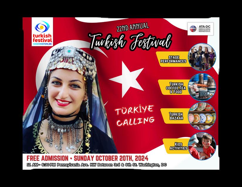 As the vibrant colors of autumn paint the Nation’s Capital, excitement is building for the 22nd Annual DC Turkish Festival, set to take place on Sunday, October 20, 2024. This year, the theme is "Türkiye Calling," and we are also proud to celebrate the 13th Turkish Heritage Month in DC, as proclaimed by Mayor Bowser. For over two decades, this cherished event has transformed Pennsylvania Avenue into a lively showcase of Turkish culture, and this year promises to be even more special.
