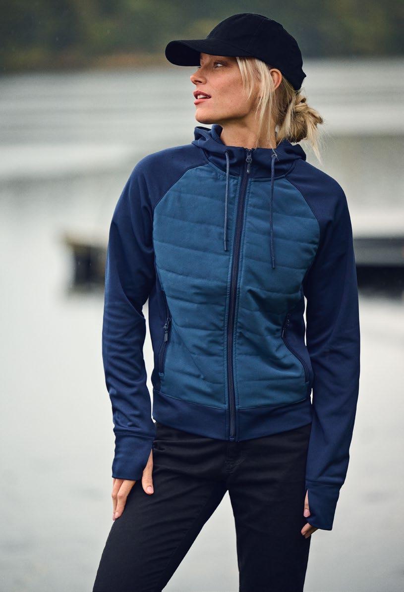 Huvjacka med dragkedja och halvmåne i nacken. Borstad på insidan. Ribbstickade muddar. Oeko-Tex 100 certifierad, certifierad ekologisk bomull och certifierad återvunnen polyester.