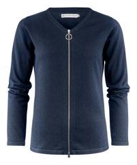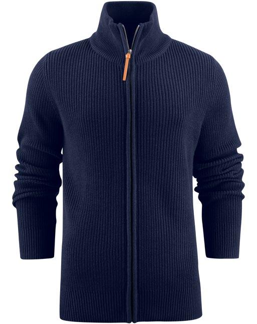 Stickad kofta med metalldragkedja framtill. 1x1 ribb vid krage, ärmar och bottensöm (herr). Öko-Tex 100 certifierad.