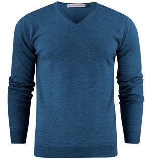 V–ringad finstickad tröja, 1 x 1 ribb i nederkant och ärmavslut. Dubbelvikt slätstickad kant i V–ringningen. Oeko-Tex certifierad.