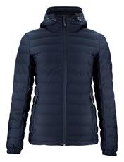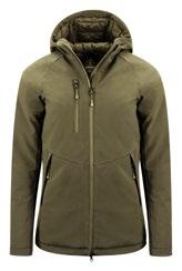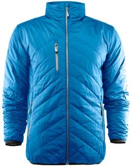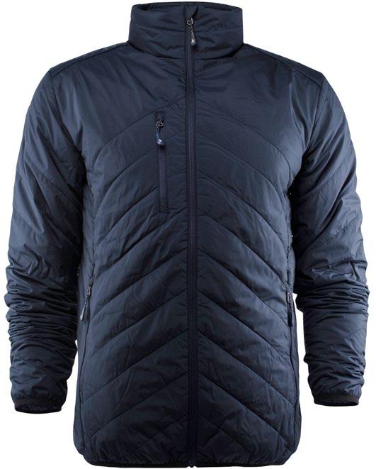 Vadderad jacka. Vind- och vattentätt material med andasfunktion. Släta, vattentäta blixtlås fram och i sidfickor. Reglerbart ärmavslut med tryckknappar. Innerfickor. Justerbar huva med elastiska snören.