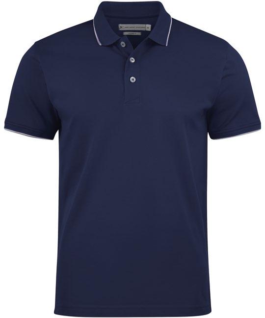 Pikétröja med stretch och tre pärlemorliknande knappar vid kragen. Klassisk rand på krage och ärm. Nackband, flatstickad krage och ärmmudd. Finns i tre snitt; Regular är klassiskt rak, Modern är tightare och något kortare, Woman är dammodellen med insvängd midja och utan knappar. Oeko-Tex certifierad.