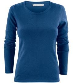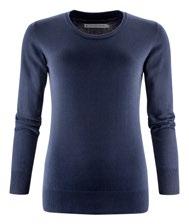 Rundhalsad, finstickad tröja. 1 x 1 ribb i nederkant och ärmavslut. Dubbelvikt slätstickad kant i ringningen. Oeko-Tex certifierad.