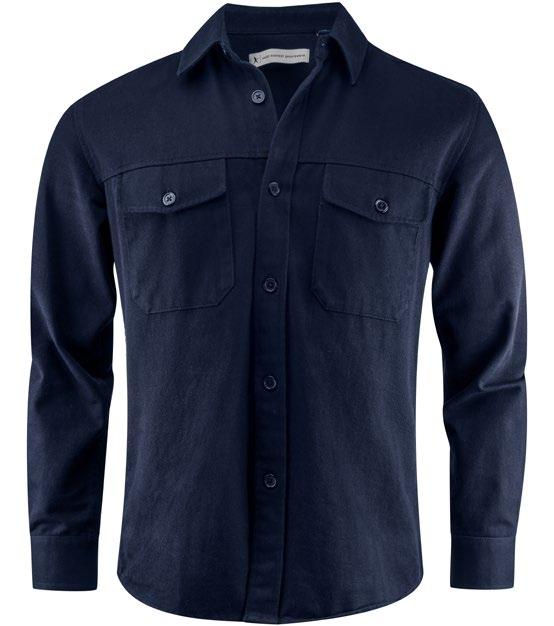 Unisex overshirt i ofodrad bomullstwill med krage, ryggok och knappar fram. Bröstfickor med lock och knapp. Med knappar i manschetten. Välvd nederkant.
