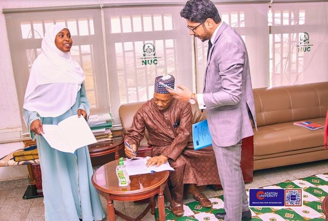 The University of Jos is one of Nigeria's top institutions close to ATAFOM International's Nigerian office. In the spirit of ATAFOM University's "Education for Integration", on the 13th of February 2023, the Vice Chancellor of the University of Jos, Professor Tanko Ishaya, met with a team from ATAFOM University International at the Nigerian Universities Commission (NUC), Abuja and signed an MOU. The ATAFOM staff present were Mr Bienvenu Akogbedji AÏSSAN (Secretary General Presidium & Assistant to the ATAFOM University President), Mrs Jamila ABUBAKAR (Head of ATAFOM Info Office Nigeria & Director of ATAFOM Language Academy), Mr Anas JAWED (Deputy and Director of Faculty of Information Technology & Project Management Professional (PMP)®) and Mr Salim IBRAHIM (Application & Admissions Team Manager & Assistant to the Head of ATAFOM Info Office Nigeria). The National Universities Commission members included, Barr Oriabure lyayi, Mrs. Funke Sule, Mrs. Goddy Nnadi, Dr. Noel Saliu, and Mr. Engr Odedina. This MOU was presented to a representative of the NUC Executive Chairman, Dr Noel Saliu, as one of the requirements for registration with NUC. This MOU opens the door to many more collaborations for ATAFOM University across Nigeria. With the vision and mission of ATAFOM University International President Sakir Yavuz "Education for Integration" we are hopeful that this co-operation will be beneficial for providing inclusive education and opportunities for everyone who wants to have quality world class education.