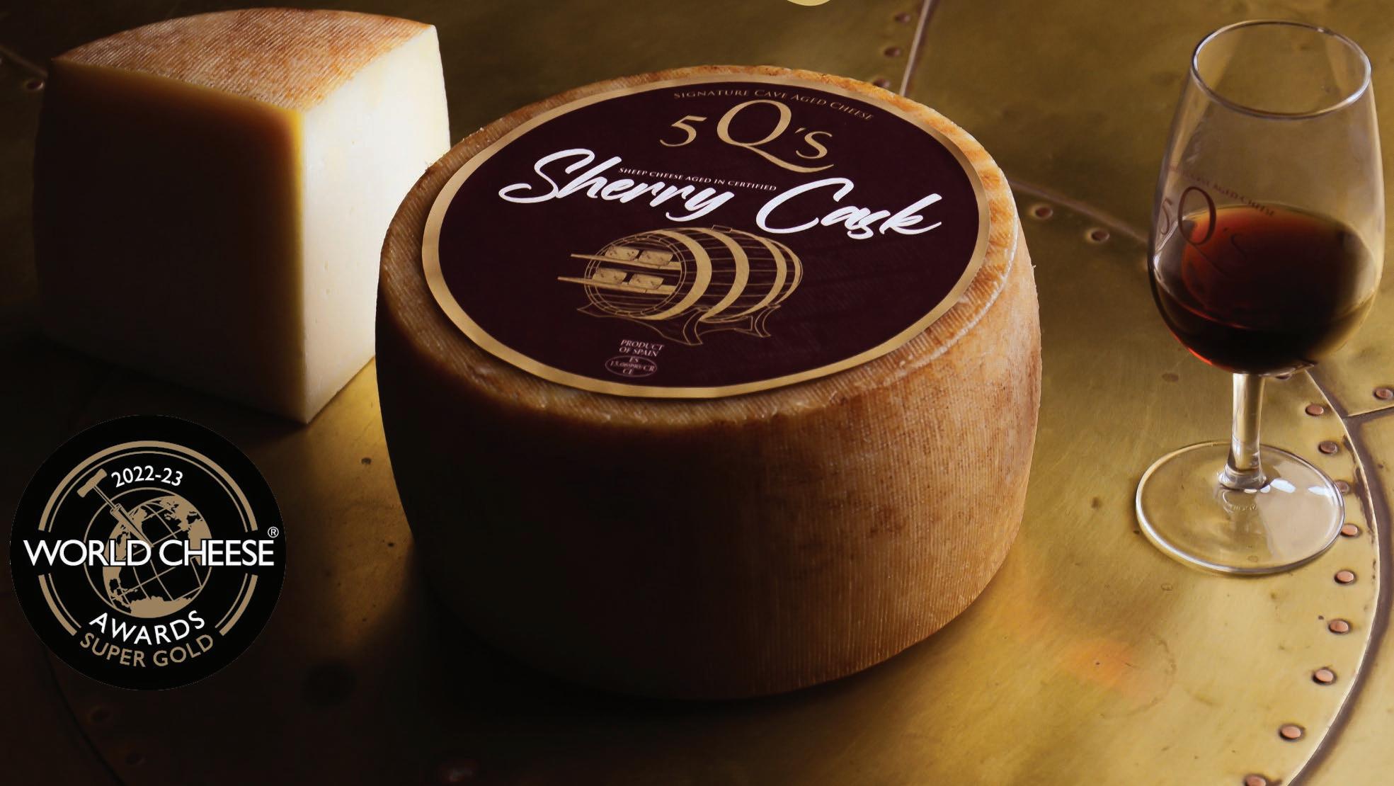 5Q’s is a cave-aged, unpasteurized sheep’s milk cheese. The one-of-a-kind curing in Sherry casks for the last few months of aging imparts oaky notes and a refined, fruity flavor, thanks to the unique aroma of the Oloroso Sherry PDO wine.