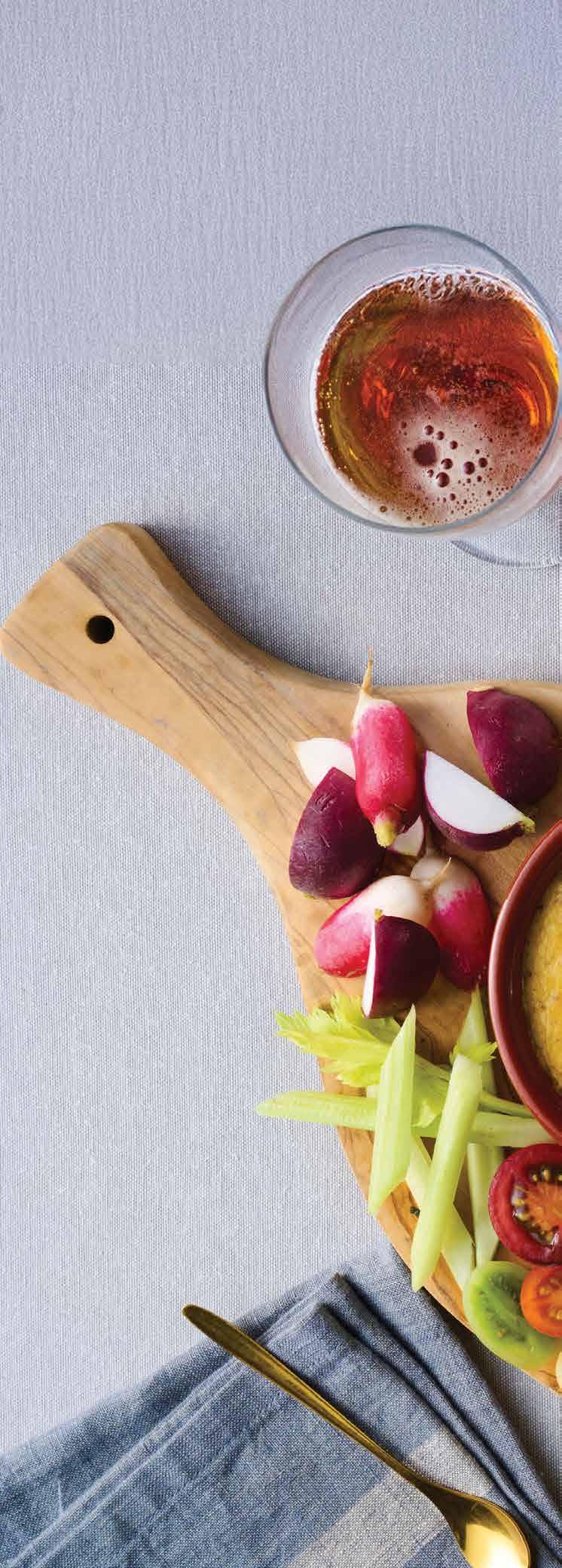 Cross-merchandise products with everything from fresh vegetable crudités and fruits to snacking staples like chips, pretzels, and butter crackers.