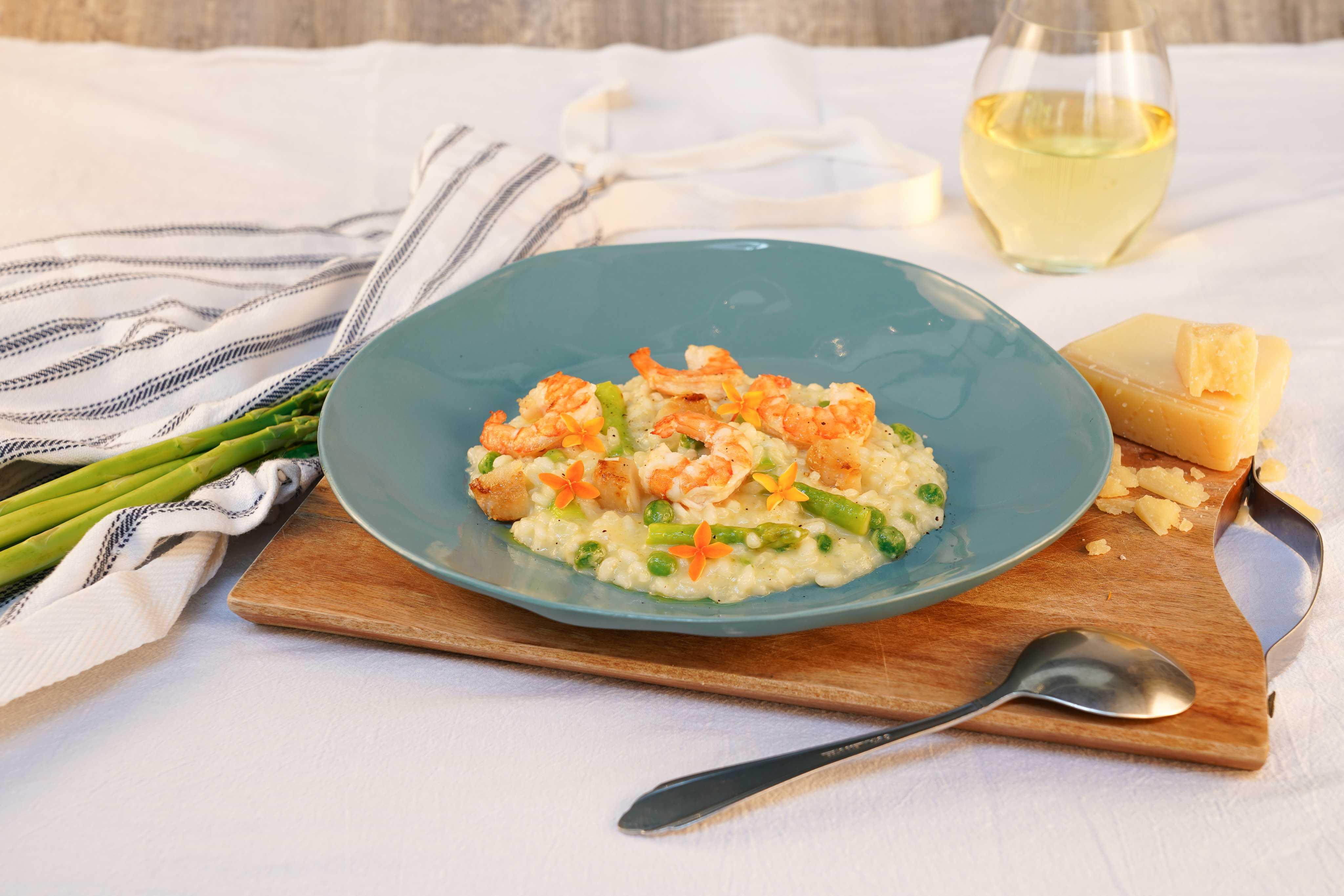 creamyshrimp&SCALLOP risottowithasparagus& greenpeas