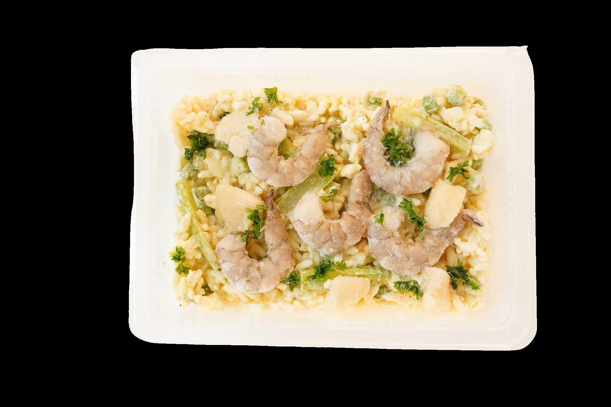 Treat yourself to a gourmet experience with our Creamy Shrimp and Scallop Risotto. This frozen microwave meal features succulent shrimp and tender scallops in a rich, creamy Parmesan risotto. Complemented by vibrant peas and crisp asparagus, it offers a balanced and indulgent dish that’s ready in minutes. Enjoy restaurant-quality flavor and convenience in every bite.