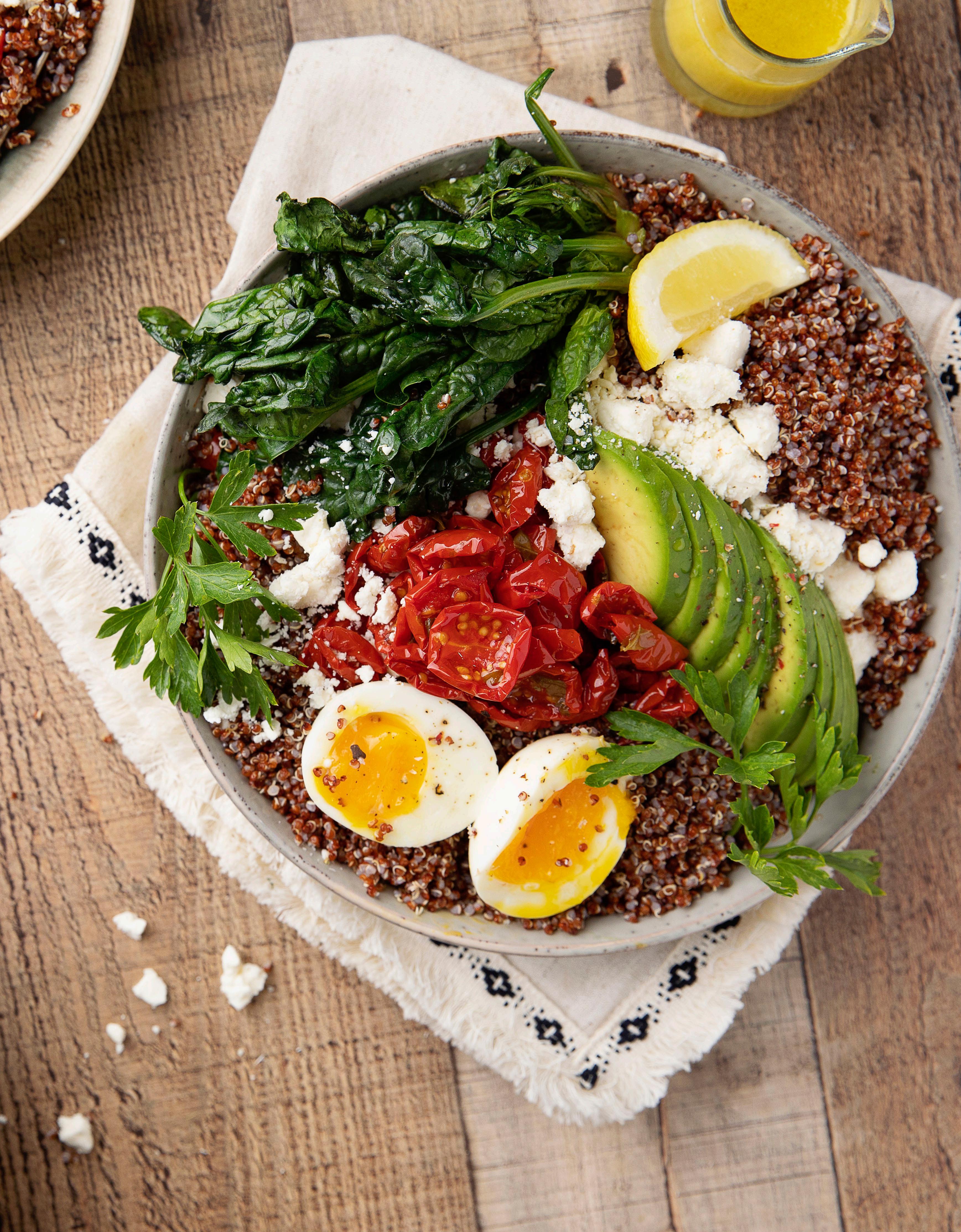 Red Quinoa Salad made with DEL DESTINO Mandarin Oranges.