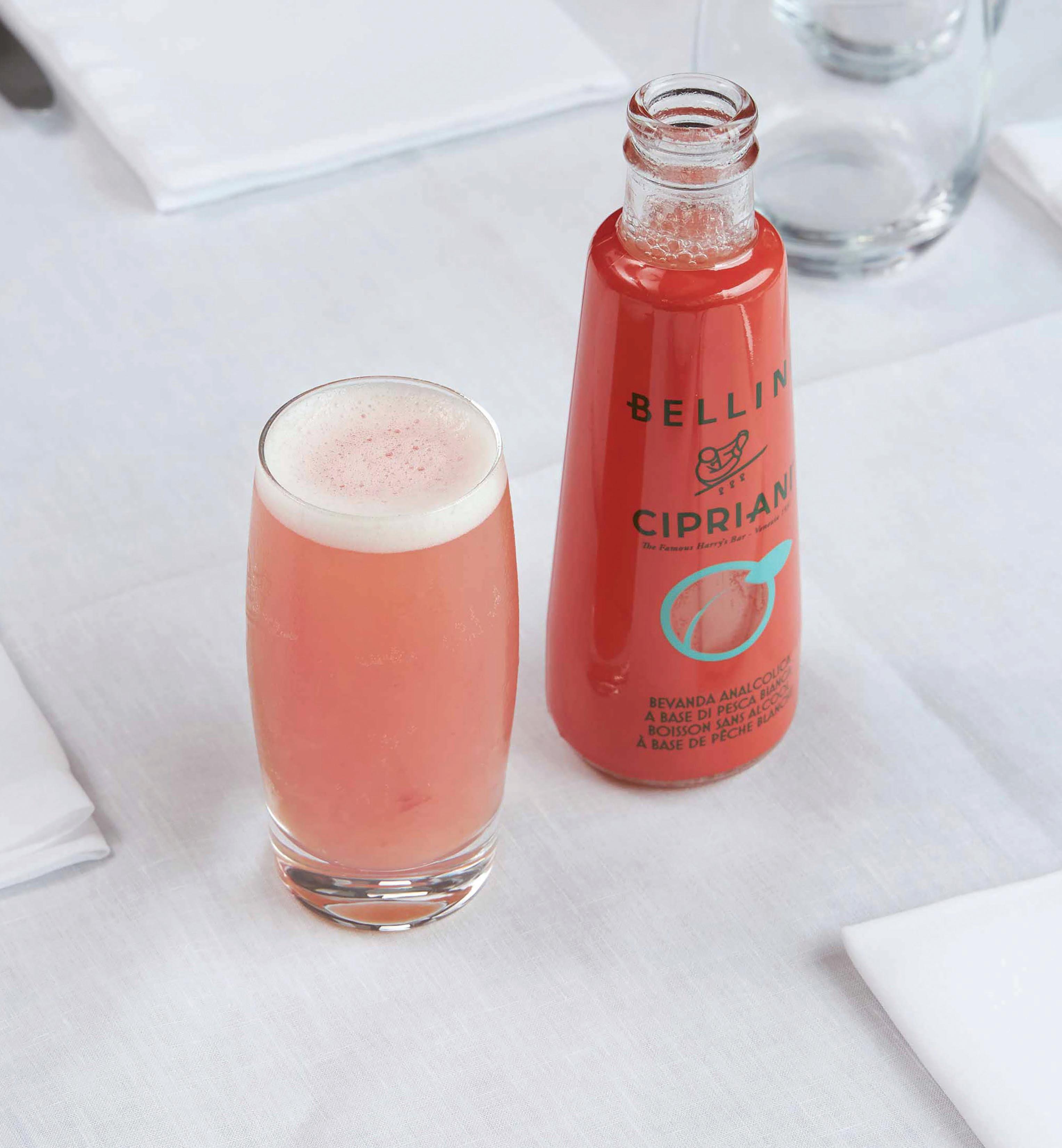 The fresh, fruity, and delicate aroma combines with the pleasant, light perlage that helps drink and balances the sweet peach puree. The result is a fresh and thirst-quenching cocktail, suitable to be consumed at any time. This is a Non-Alcoholic beverage but mixed with Gin, Vodka, or white Rum, it becomes a fruit-based cocktail ideal for every season.