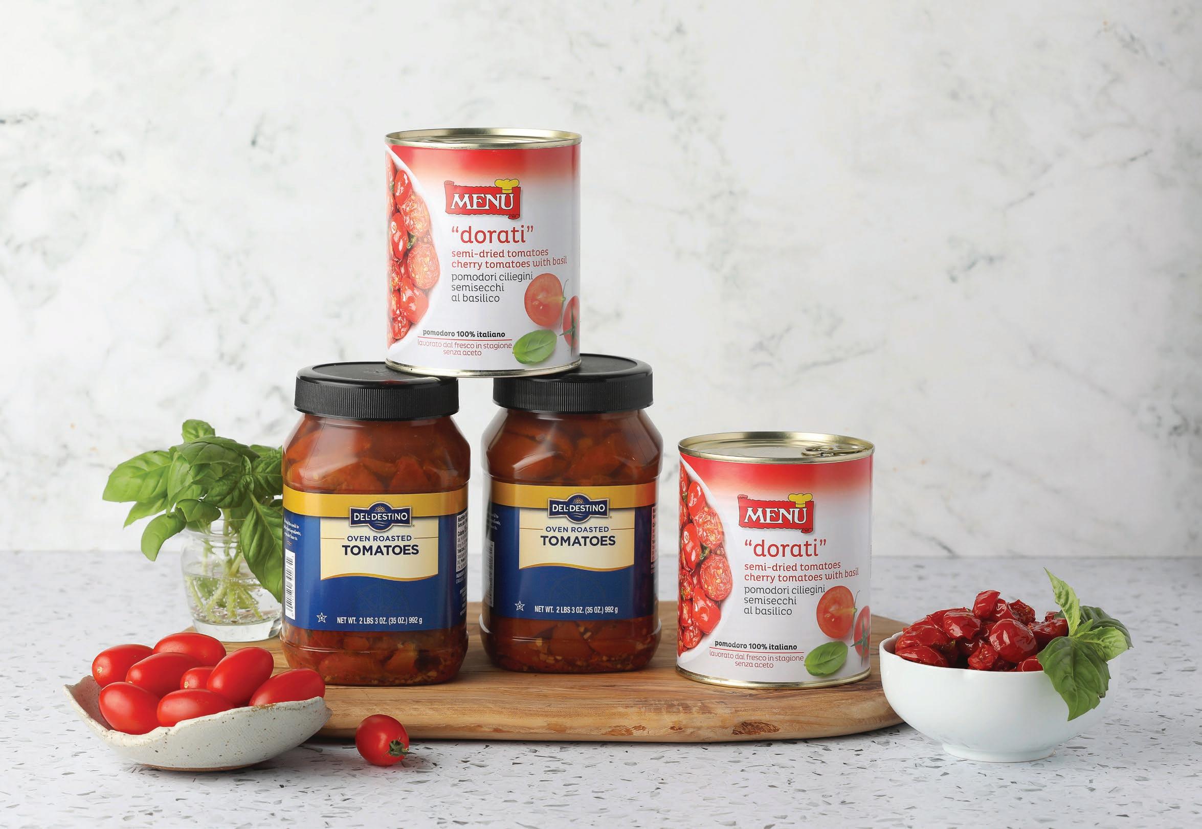 Our tomato selection includes something for every culinary need. MENU makes high quality, clean label products, like Dorati Cherry tomatoes and Semi-Dried Soleggiati tomatoes, which start with 100% Italian tomatoes. Del Destino offers a range of sun-dried tomatoes, created by the natural heat of the sun, andavailable in many forms such as diced or sliced as well as whole oven-roasted tomatoes.