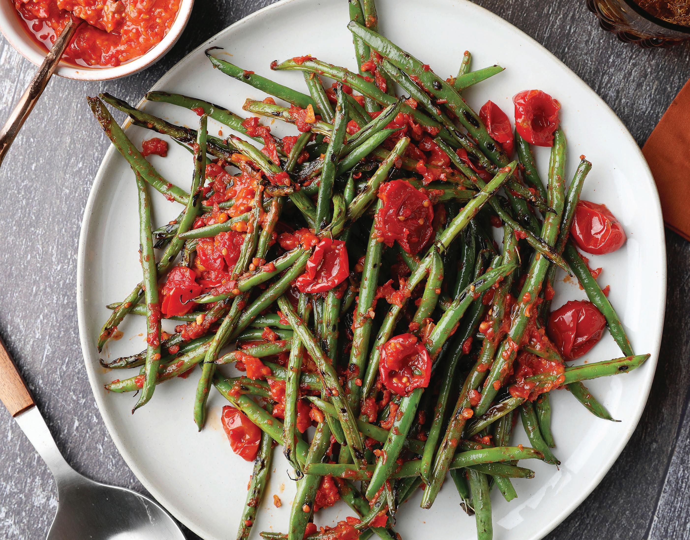 Roasted Green Beans tossed with MENU Dorati Cherry Tomatoes.