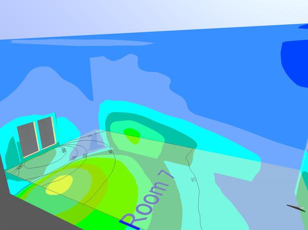 Standar ACH pada ruang pembelajaran adalah 3-4 sementara ruangan asrama hanya memiliki skor 7,25 Rekomendasi desain Pengurangan jumlah jendela di bagian dalam ruangan atau mengganti dengan jendela mati.