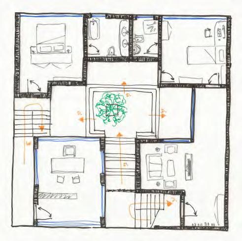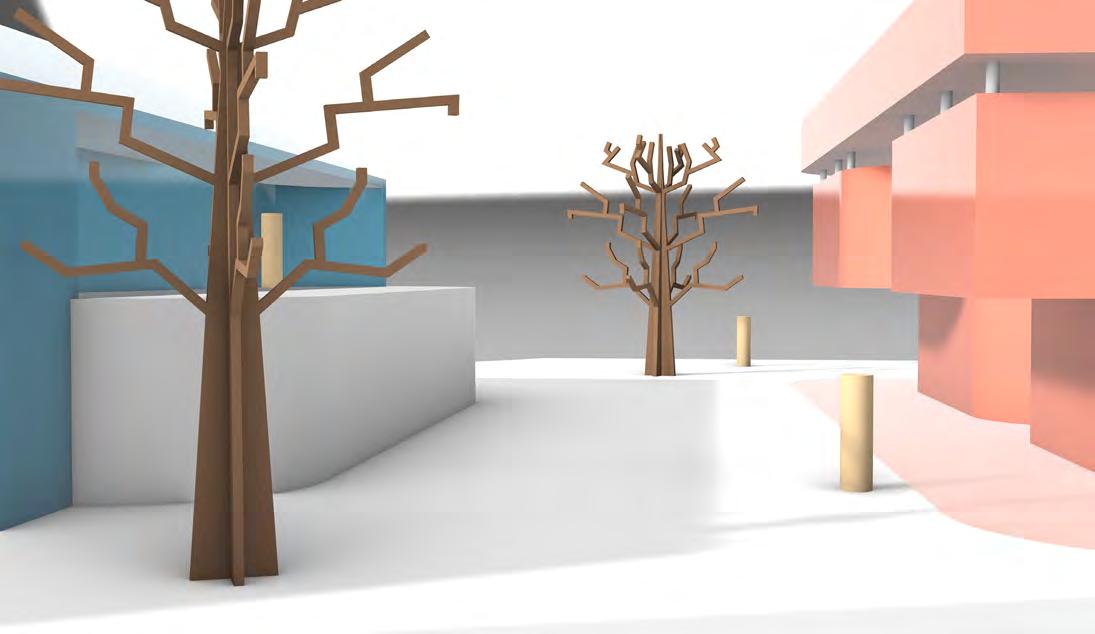 It can create a big rift between spaces, or it can bring them closer, all circling around the intimate green space in the middle. The explorations of these ideas are presented in the following pages.